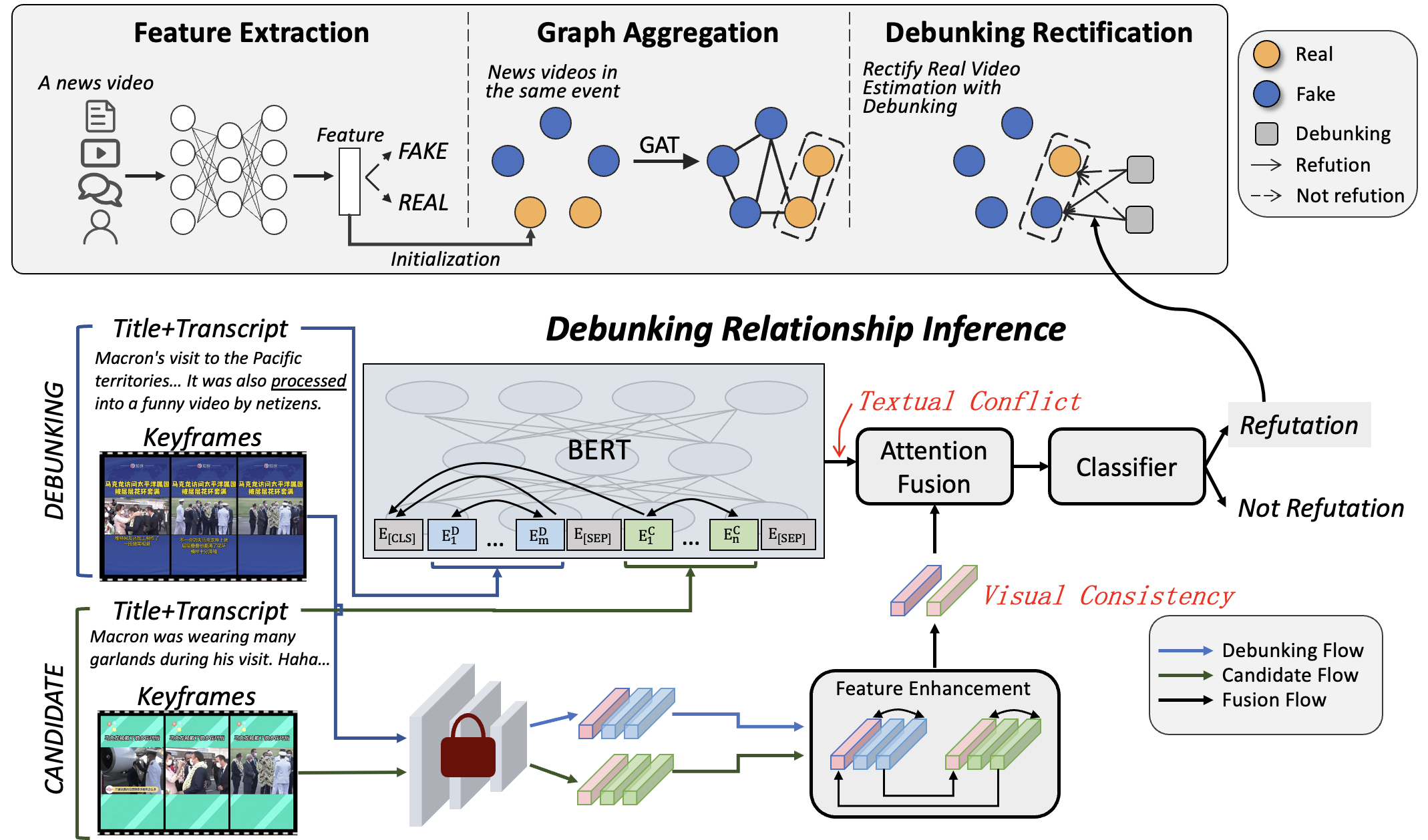 fake news detection and fact-checking, and firstly proves the effectiveness of debunking videos in detection.